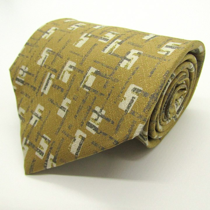 クリッツア ブランド ネクタイ 総柄 格子柄 パネル柄 シルク 未使用タグ付 PO メンズ イエロー KRIZIA ...