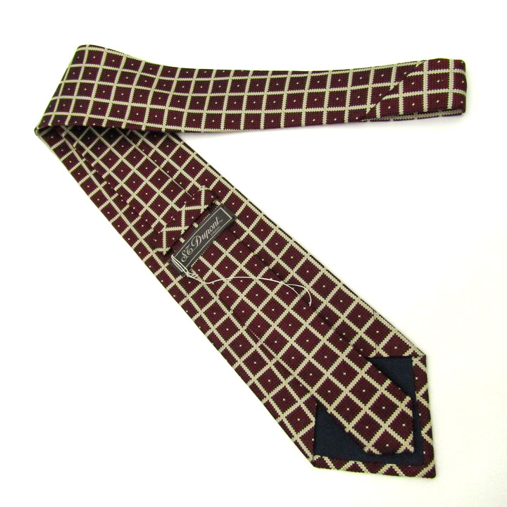 エスティーデュポン ブランド ネクタイ チェック柄 ドット柄 シルク 日本製 未使用タグ付 PO メンズ レ...