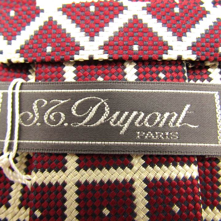 エスティーデュポン ブランド ネクタイ チェック柄 ドット柄 シルク 日本製 未使用タグ付 PO メンズ レッド S.T. Dupont 【中古】