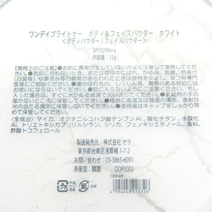ワンデイブライトナー ボディ&フェイスパウダー ホワイト 未使用 コスメ 箱キズ有 レディース 【中古】