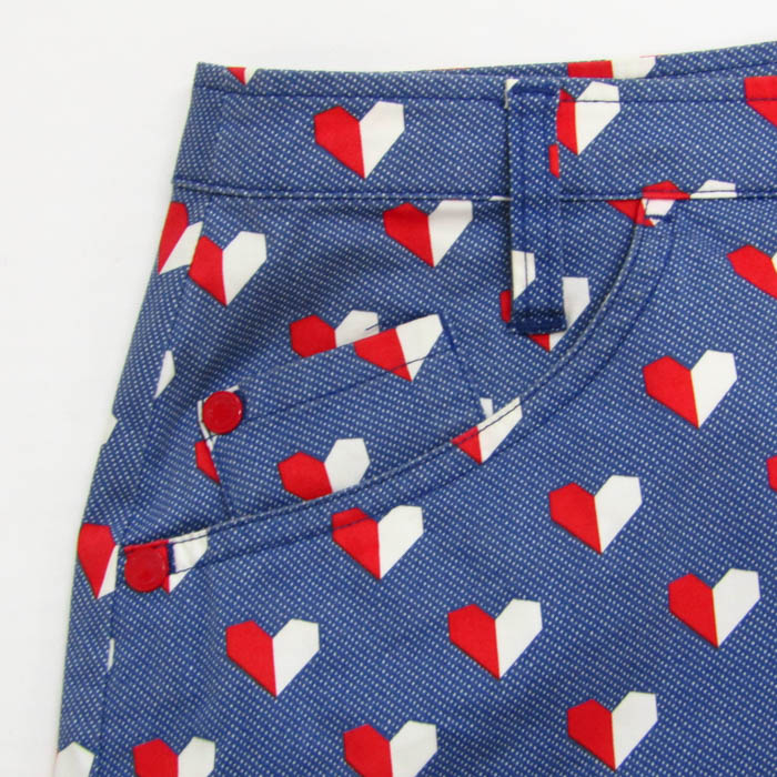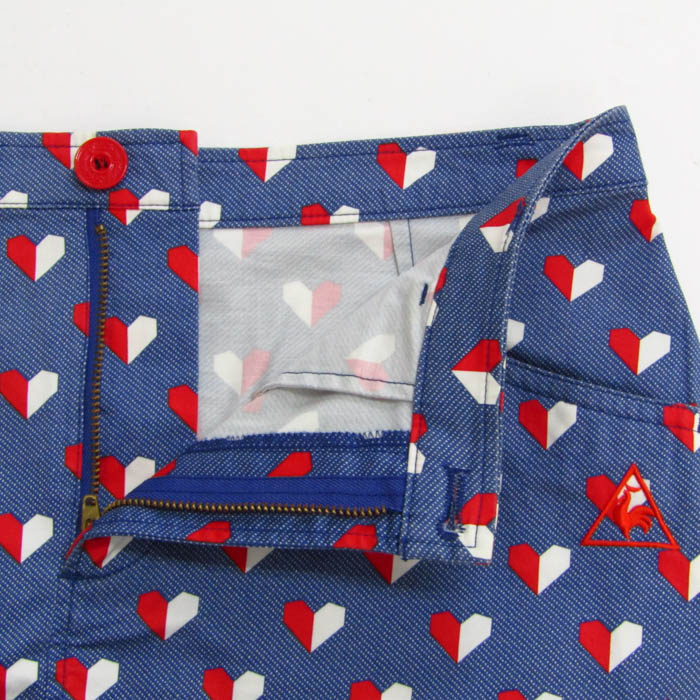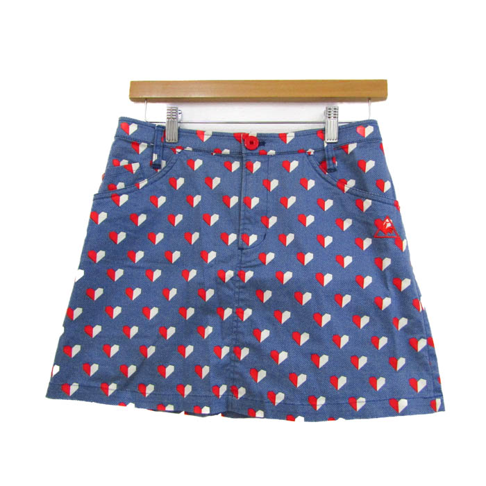 ルコックスポルティフ ミニスカート ボトムス スコート ハート柄 ゴルフウエア レディース 9サイズ 青×赤×白 le coq sportif 【中古】