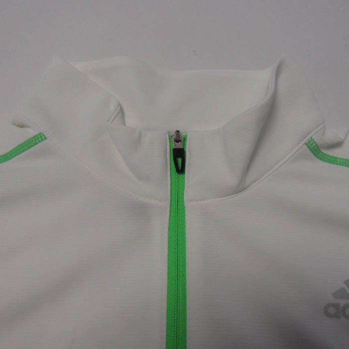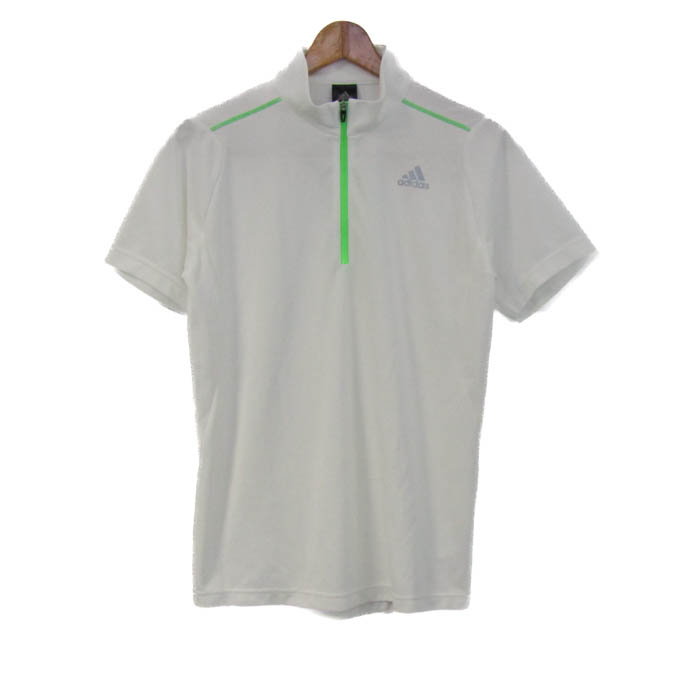 アディダス ポロシャツ トップス 半袖 ハイネック ハーフジップ ゴルフウエア メンズ Lサイズ オフホワイト×黄緑 adidas 【中古】