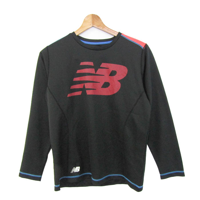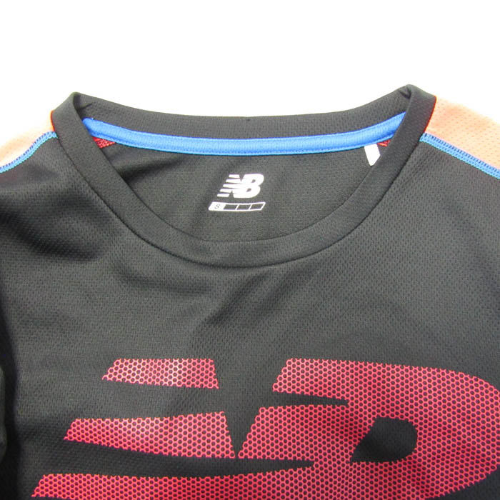 ニューバランス 長袖Tシャツ トップス ロゴT スポーツウエア メンズ Sサイズ 黒×オレンジ×青 NEW BALAN...