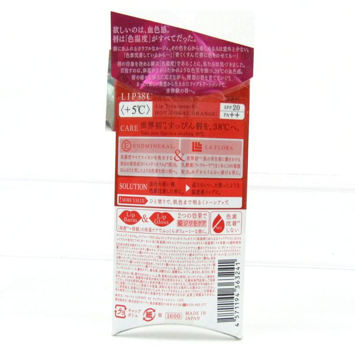 フローフシ LIP38℃ リップトリートメント +5℃ コーラルオレンジ 未使用 リップカラー コスメ レディース...