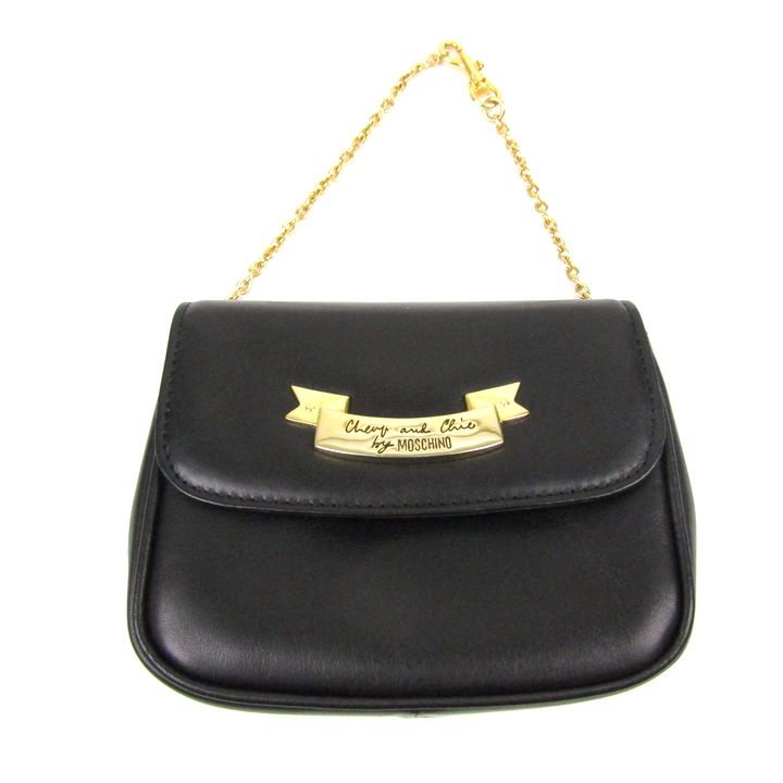 モスキーノ ハンドバッグ ポーチ レザー 鞄 カバン ブランド レディース ブラック MOSCHINO 【中古】