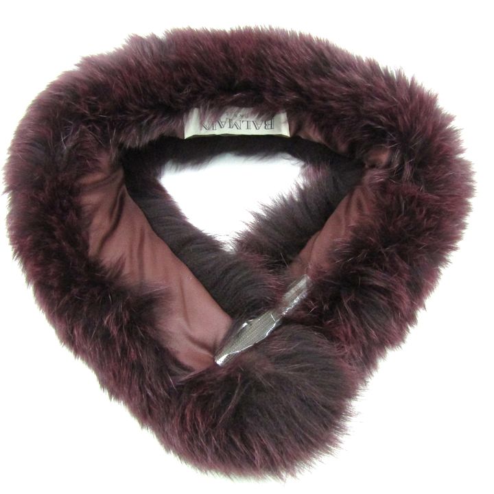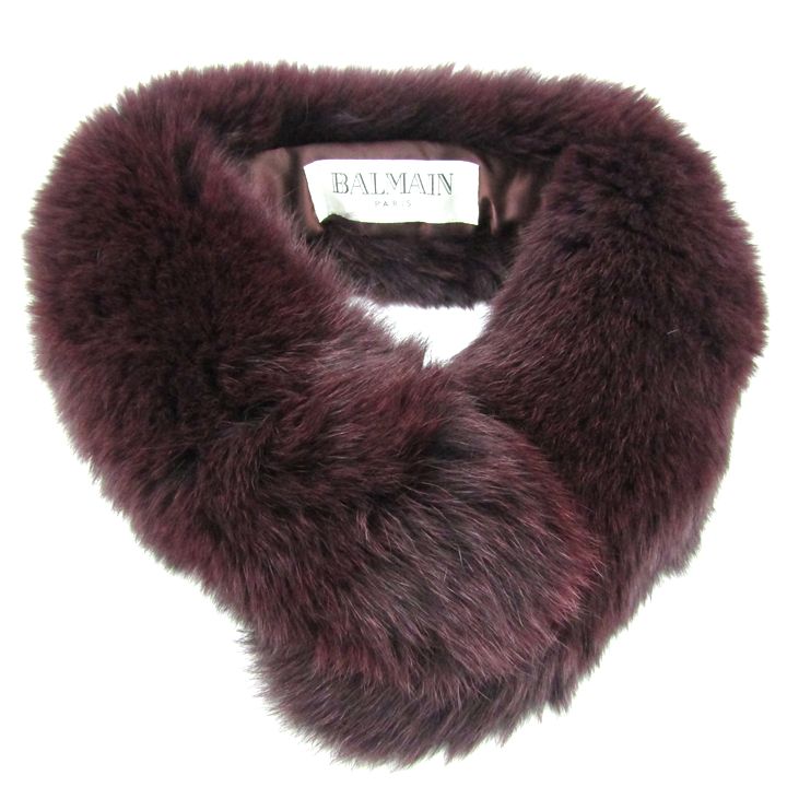 バルマン ファー ショール ティペット リアルファー マフラー ブランド レディース ボルドー BALMAIN 【中古】