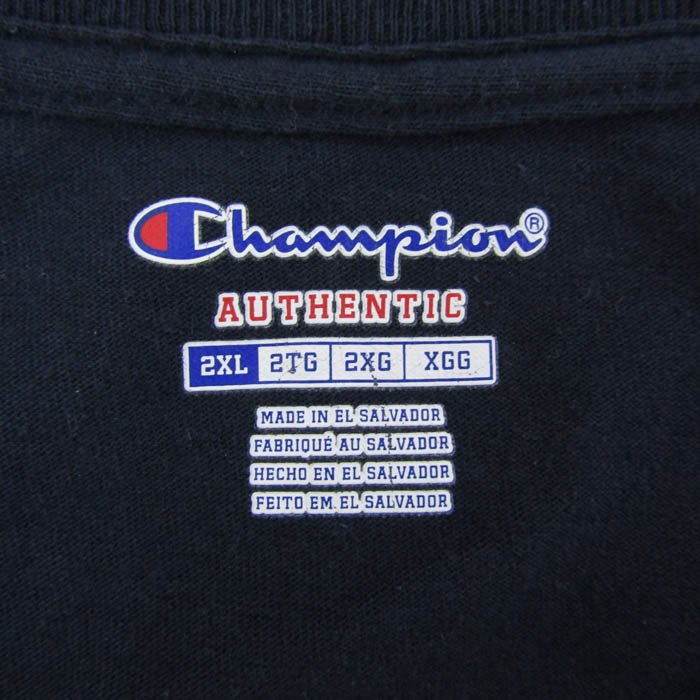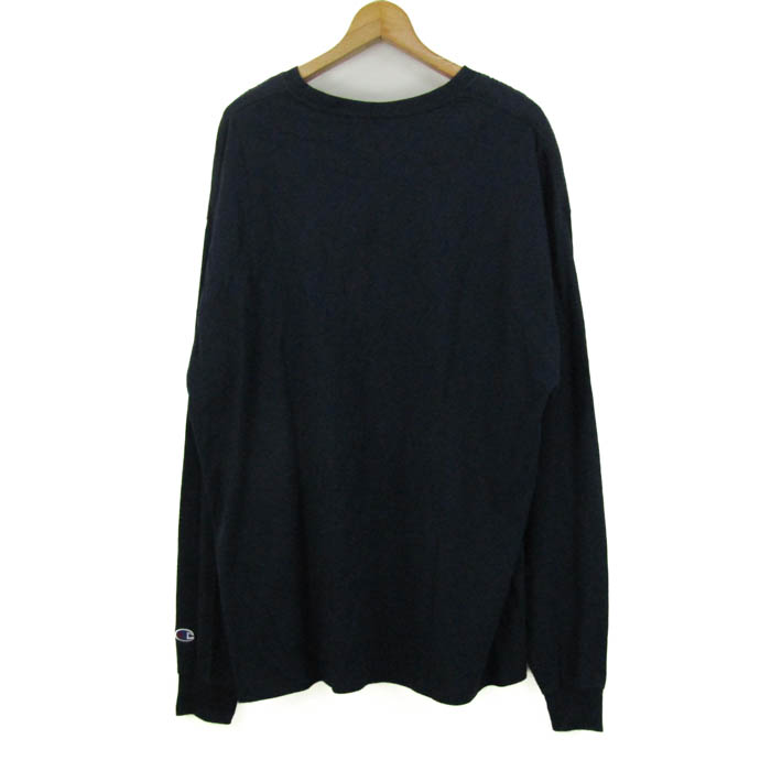チャンピオン 長袖Tシャツ トップス ワンポイントロゴ ロンT コットン 大きいサイズ メンズ 2XLサイズ ネイビー Champion 【中古】
