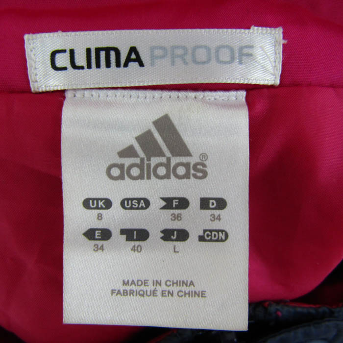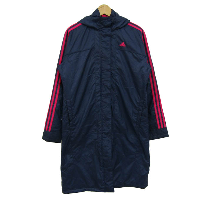 アディダス 中綿ジャケット ベンチコート アウター クライマプルーフ スポーツウエア レディース Lサイズ 紺×ピンク adidas 【中古】