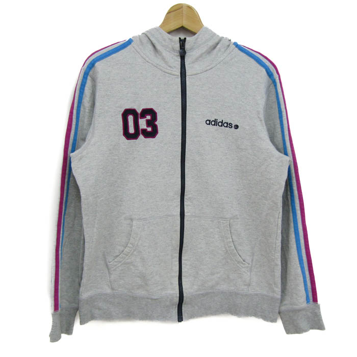 アディダス パーカー トップス ジップアップ ネオレーベル スポーツウエア レディース Lサイズ グレー×紺×ピンク adidas 【中古】