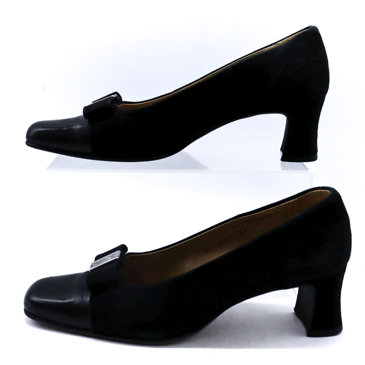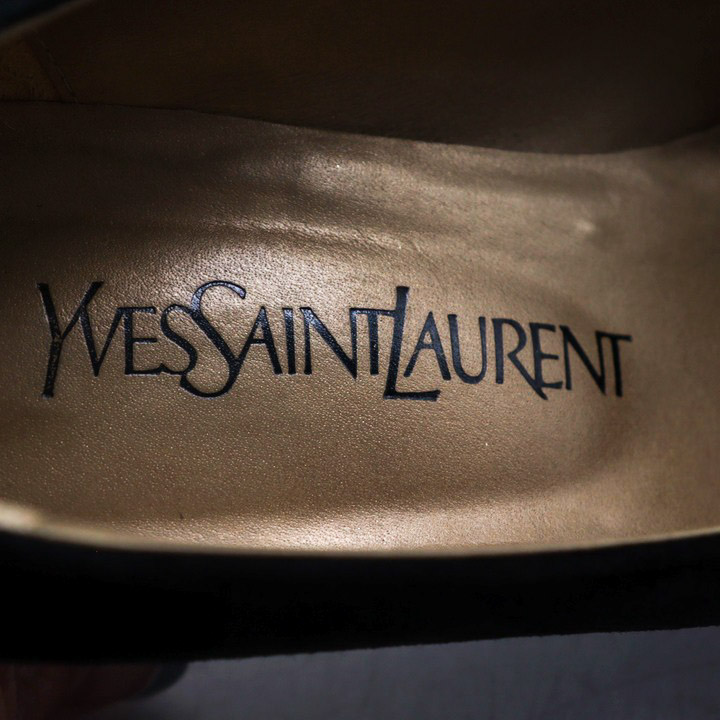 イヴ・サンローラン パンプス チャンキーヒール シューズ ブランド 靴 黒 レディース 37サイズ ブラック...