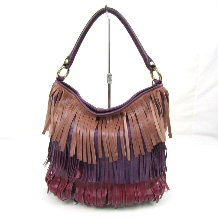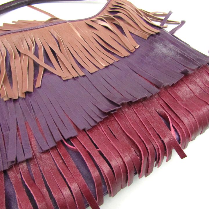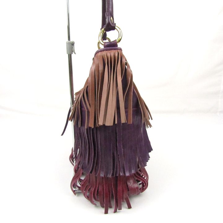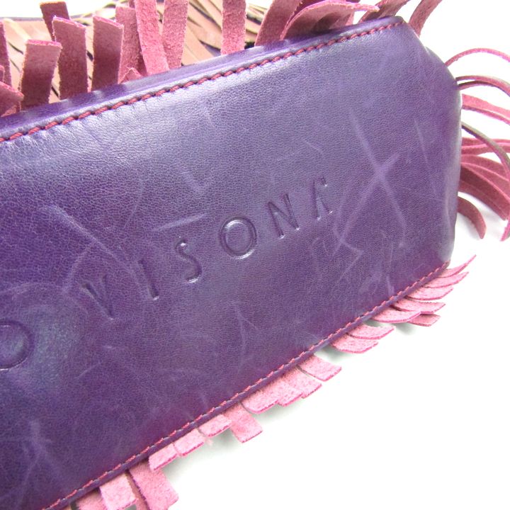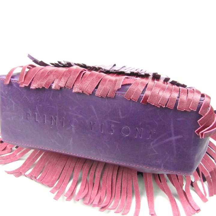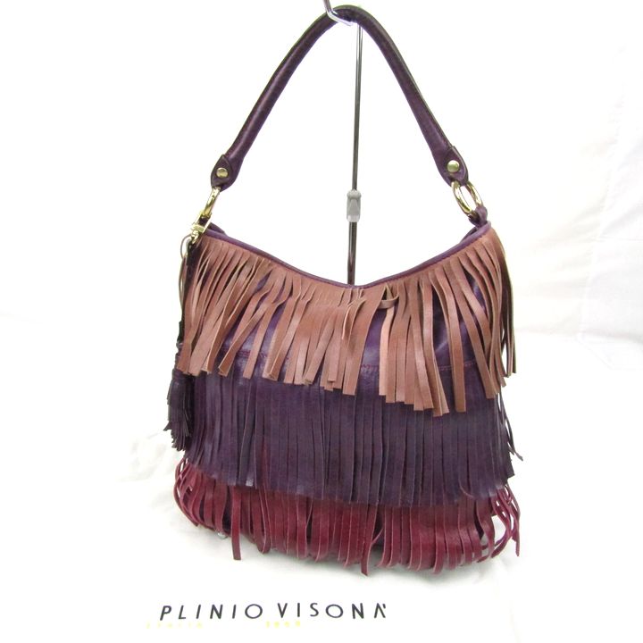 プリニオ ヴィソナ ショルダーバッグ フリンジ レザー イタリア製 鞄 ブランド レディース パープル PLINIO VISONA 【中古】