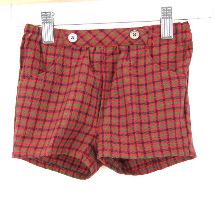 ファミリア ショートパンツ ボトムス チェック柄 ウール混 キッズ 男の子用 100サイズ 赤×緑 Familiar ...
