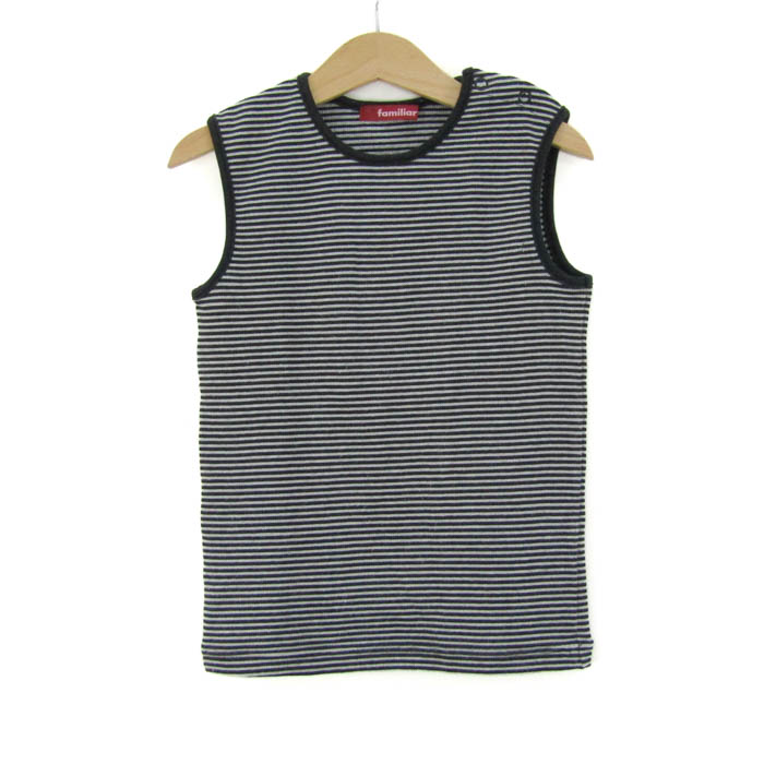 ファミリア タンクトップ ノースリーブ シャツ トップス ボーダー柄 キッズ 男の子用 140サイズ 黒×グレー Familiar 【中古】