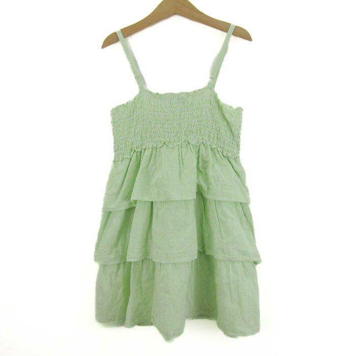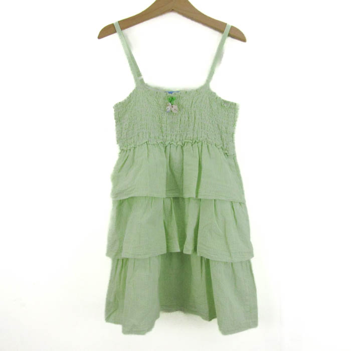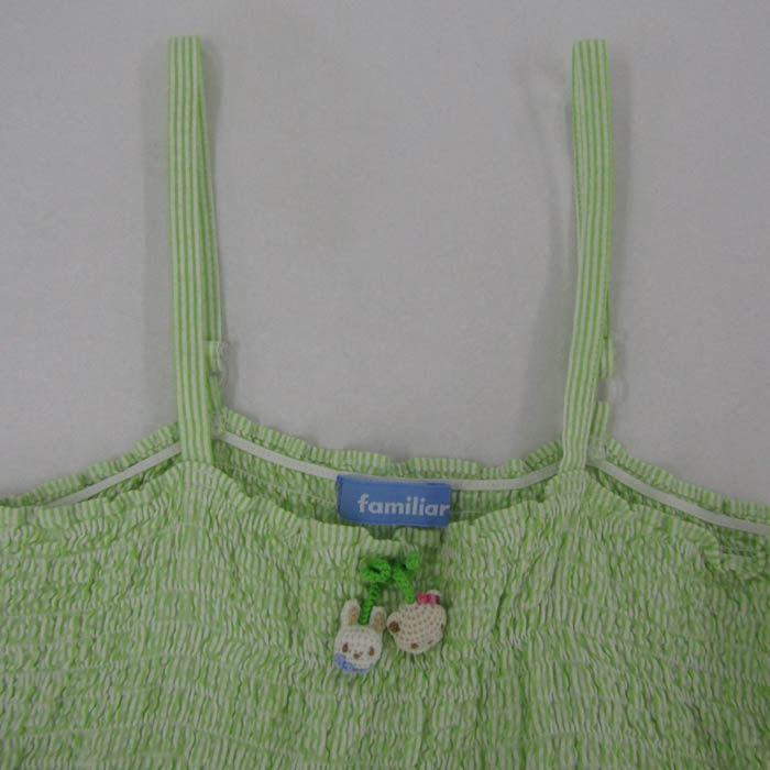 ファミリア キャミソールワンピース トップス ティアードフリル キッズ 女の子用 120サイズ 黄緑×白 Familiar 【中古】