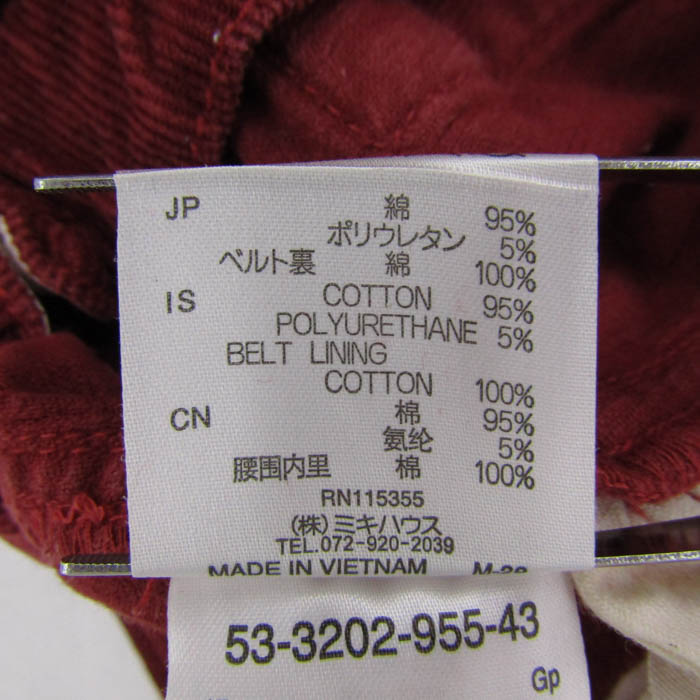 ミキハウス パンツ ボトムス ストレッチ コーデュロイ ブラックベア ベビー 男の子用 90サイズ レッド MIKIHOUSE 【中古】