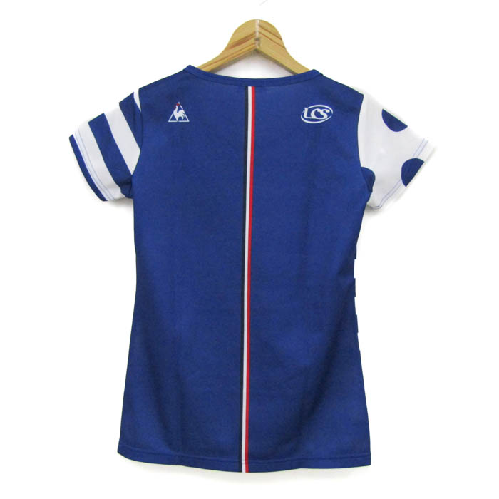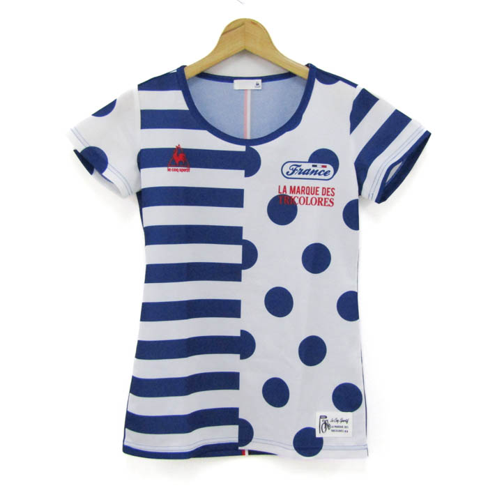 ルコックスポルティフ 半袖Tシャツ トップス ドット柄 ボーダー柄 スポーツウエア レディース Sサイズ 白×青×赤 le coq sportif 【中古】