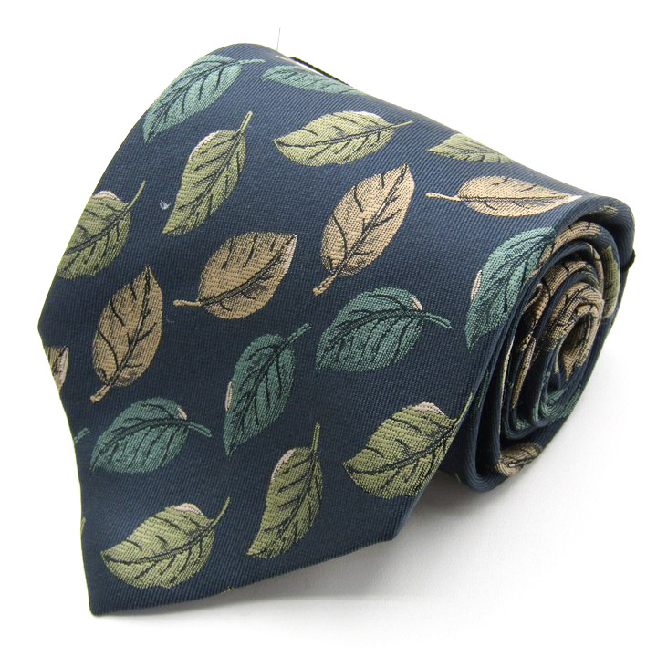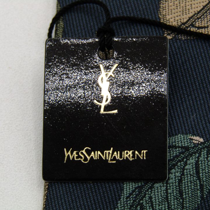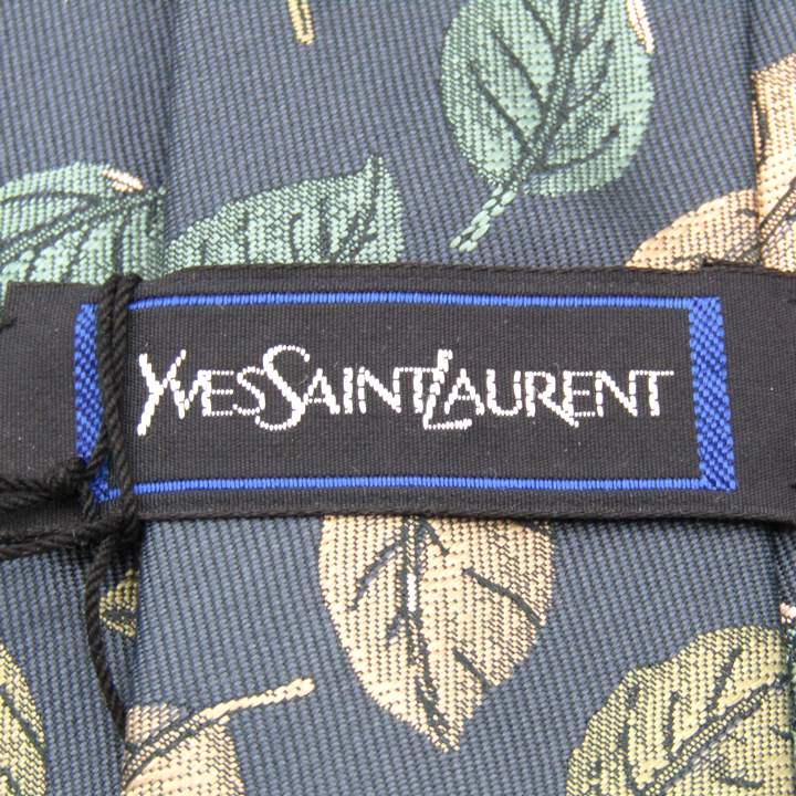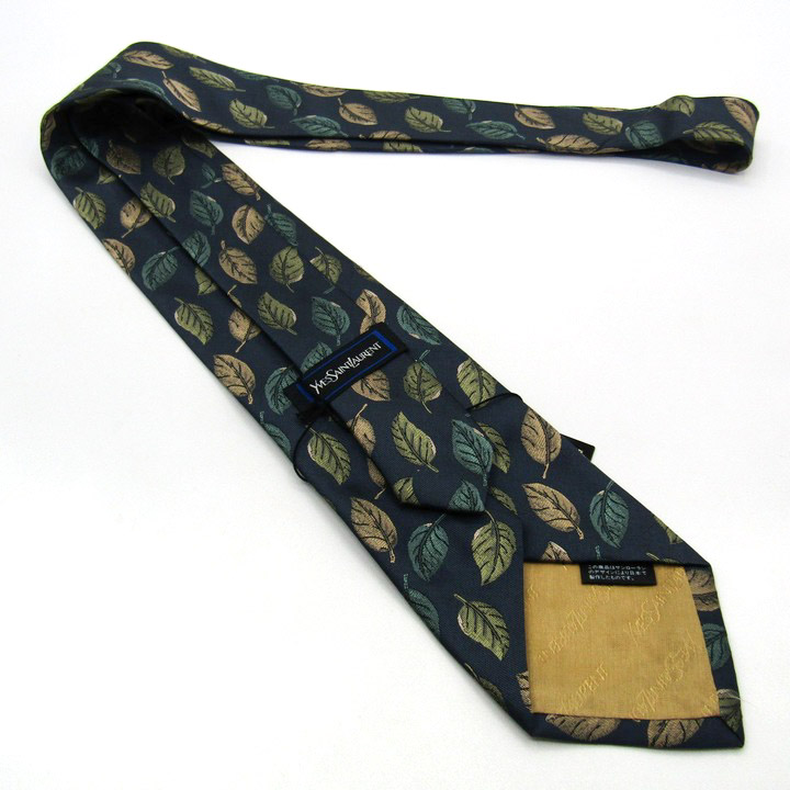 イヴ・サンローラン ブランド ネクタイ リーフ柄 小紋柄 シルク 未使用タグ付 PO メンズ ネイビー YVES ...