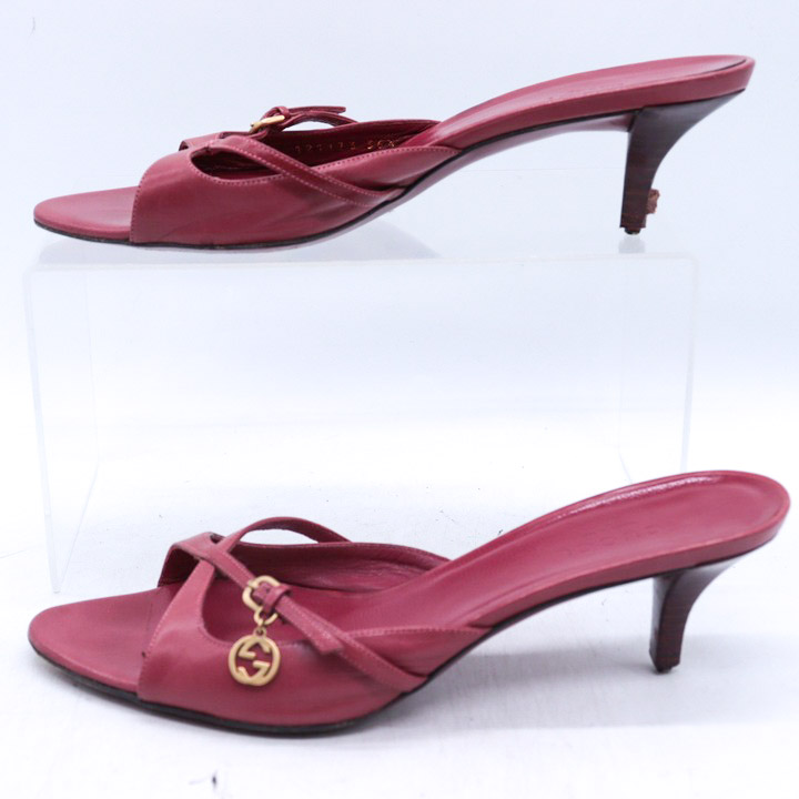 グッチ ミュール サンダル GGロゴ レザー ブランド 靴 イタリア製 赤 レディース 36.5サイズ レッド GUCCI 【中古】
