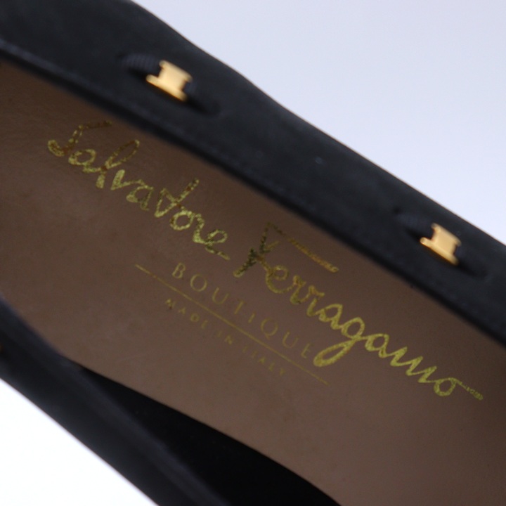 サルヴァトーレフェラガモ パンプス ヴァラ リボン シューズ ブランド 靴 レディース 5.5サイズ ブラック Salvatore Ferragamo 【中古】