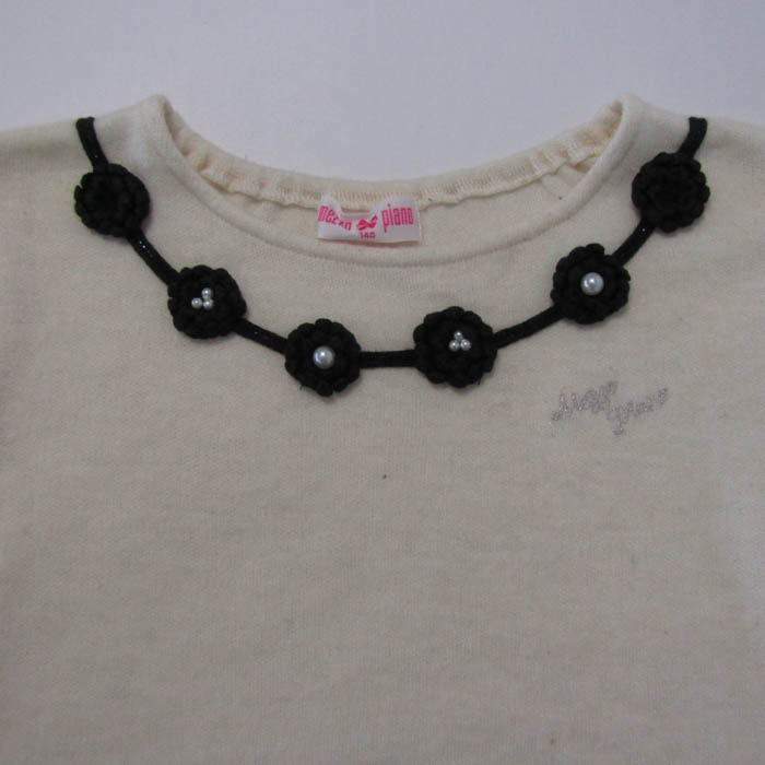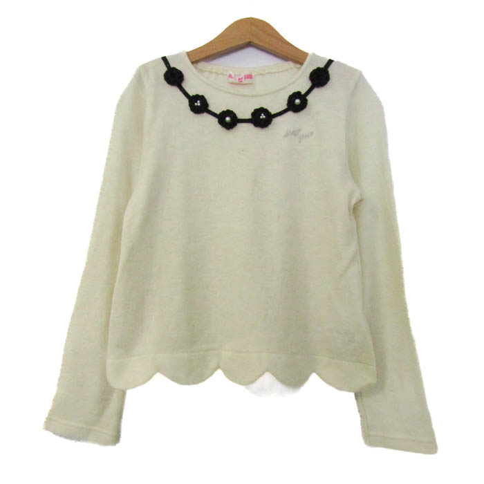 メゾピアノ ニット トップス 長袖 パール フラワーモチーフ キッズ 女の子用 140サイズ クリーム Mezzo Piano 【中古】