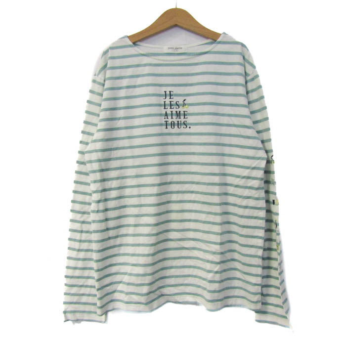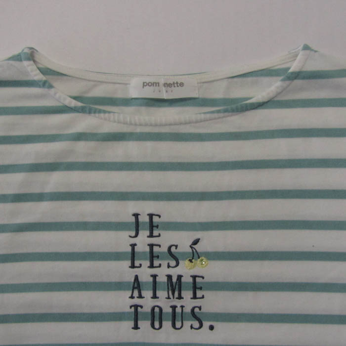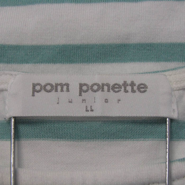 ポンポネット 長袖Tシャツ トップス ボーダー柄 コットン キッズ 女の子用 LL(165)サイズ 白×緑 pom ponette 【中古】