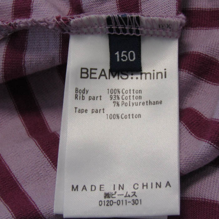 ビームスミニ 長袖Tシャツ トップス ボーダー柄 コットン キッズ 女の子用 150サイズ ピンク×紫 BEAMS mini 【中古】