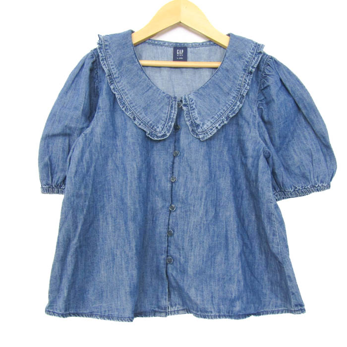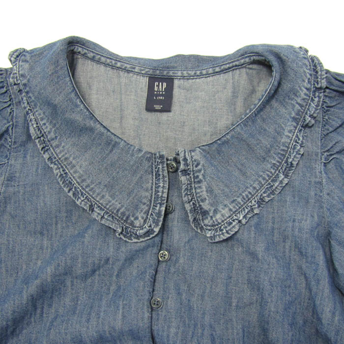 ギャップキッズ ブラウス シャツ トップス 半袖 デニムシャツ フリル キッズ 女の子用 L(10)サイズ ネイ...