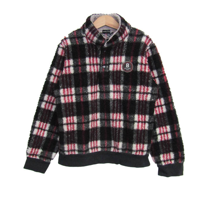 べべ ブルゾン ジャケット アウター フリース チェック柄 キッズ 男の子用 140サイズ 黒×白×赤 BeBe 【中古】