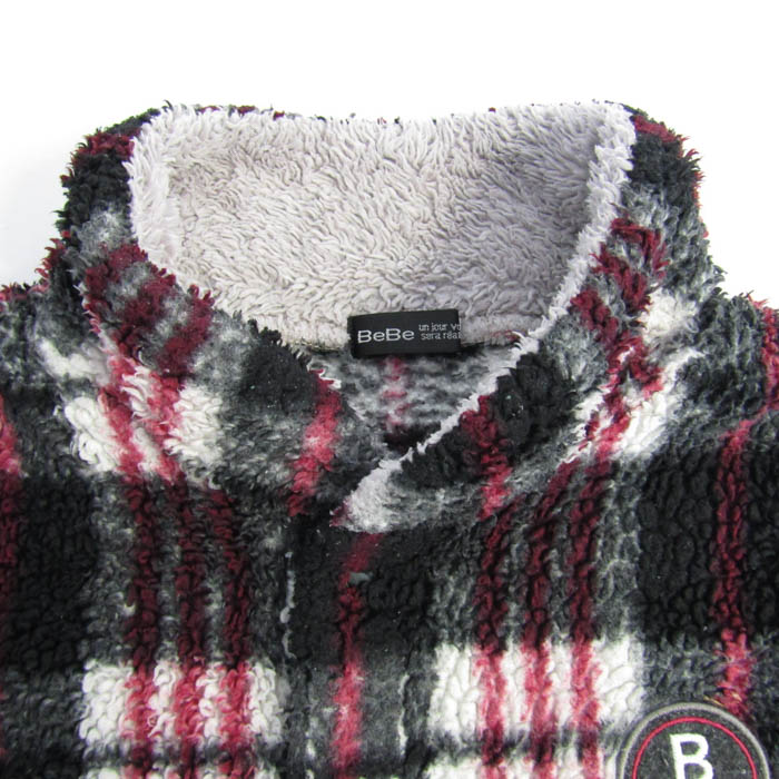 べべ ブルゾン ジャケット アウター フリース チェック柄 キッズ 男の子用 140サイズ 黒×白×赤 BeBe 【...