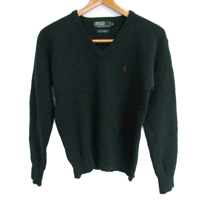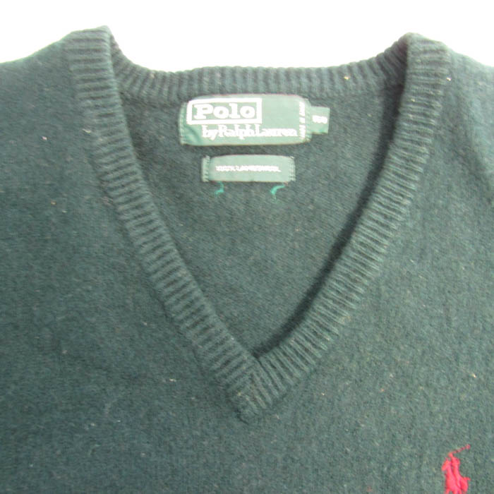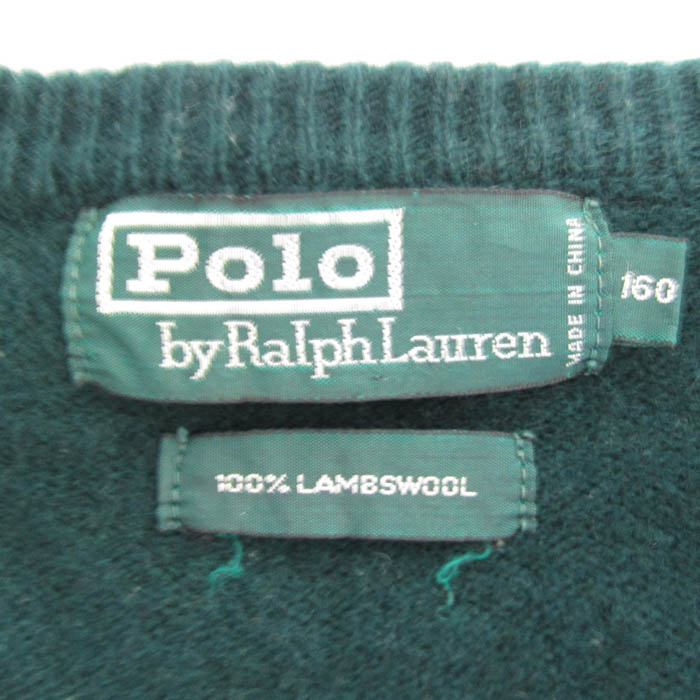 ポロバイラルフローレン セーター トップス 長袖 Vネック ニット ラムウール キッズ 男の子用 160サイズ ダークグリーン Polo by Ralph Lauren 【中古】