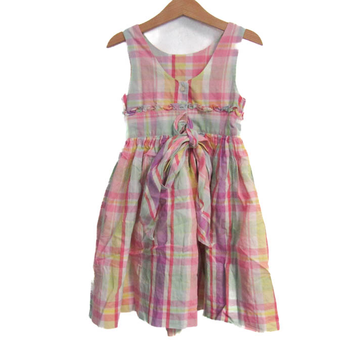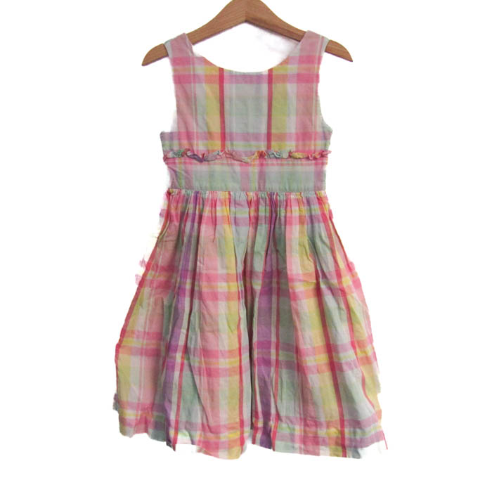 ラルフローレン ワンピース トップス ノースリーブ チェック柄 キッズ 女の子用 4/4Tサイズ ピンク×ミント RALPH LAUREN 【中古】