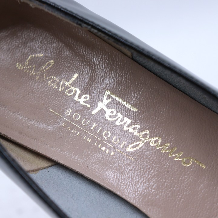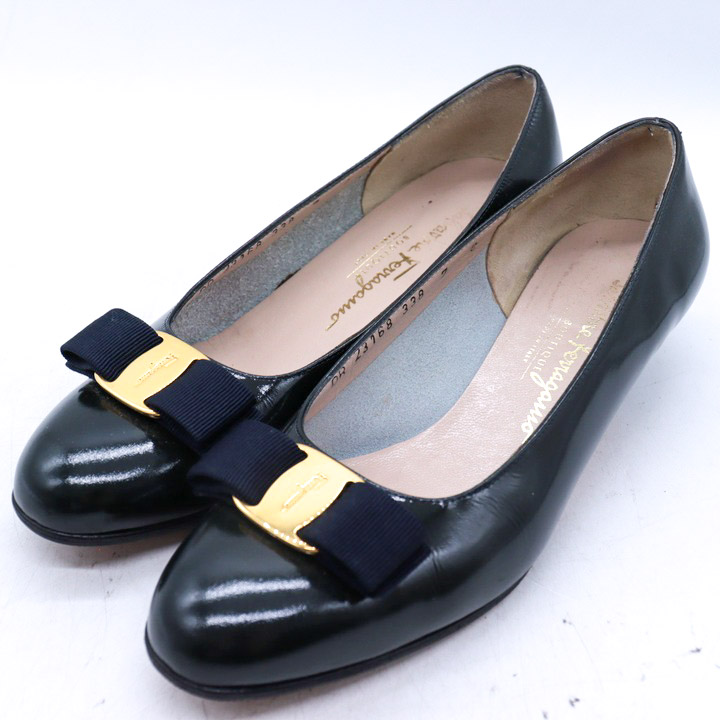 サルヴァトーレフェラガモ パンプス ヴァラ リボン シューズ 靴 イタリア製 黒 レディース 7サイズ ブラ...