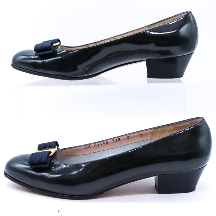 サルヴァトーレフェラガモ パンプス ヴァラ リボン シューズ 靴 イタリア製 黒 レディース 7サイズ ブラック Salvatore Ferragamo 【中古】