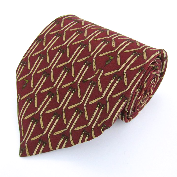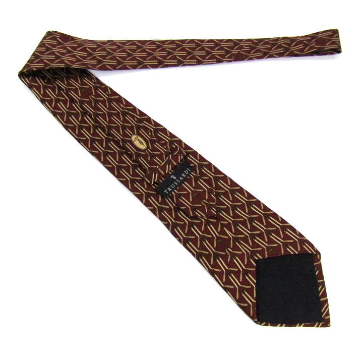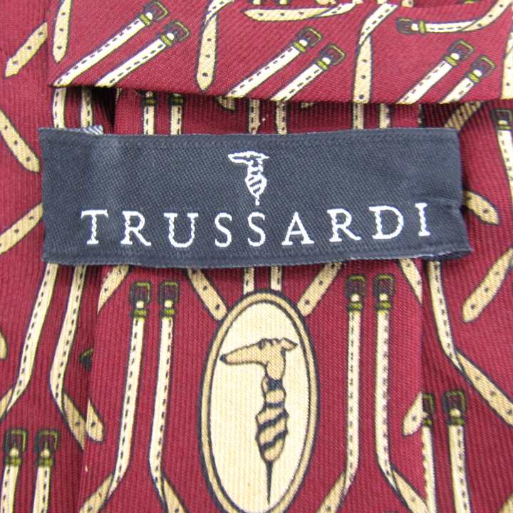 トラサルディ ブランド ネクタイ ロゴグラム ベルト 小紋柄 PO メンズ ワインレッド TRUSSARDI 【中古】