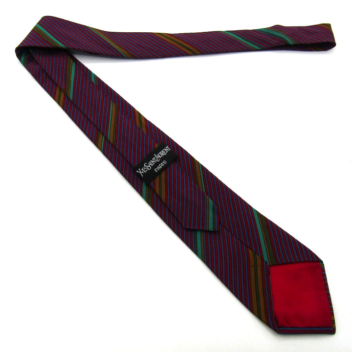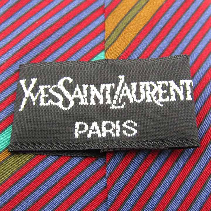 イヴ・サンローラン ブランドネクタイ YSL ストライプ柄 PO メンズ レッド YVES SAINT LAURENT 【中古】