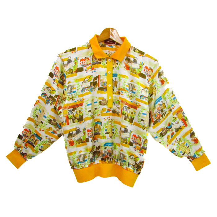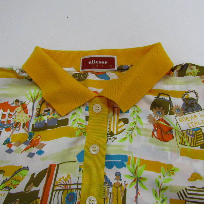エレッセゴルフ ポロシャツ トップス 長袖 総柄 ゴルフウエア レディース Mサイズ イエロー ellesse GOL...