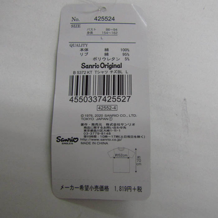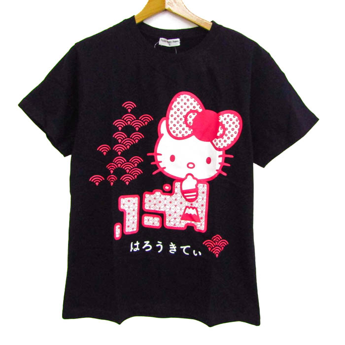 サンリオ 半袖Tシャツ トップス ハローキティジャパン コットンT 未使用品 レディース Lサイズ 黒×白×...