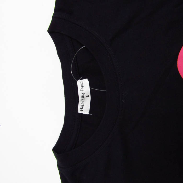 サンリオ 半袖Tシャツ トップス ハローキティジャパン コットンT 未使用品 レディース Lサイズ 黒×白×ピンク SANRIO 【中古】