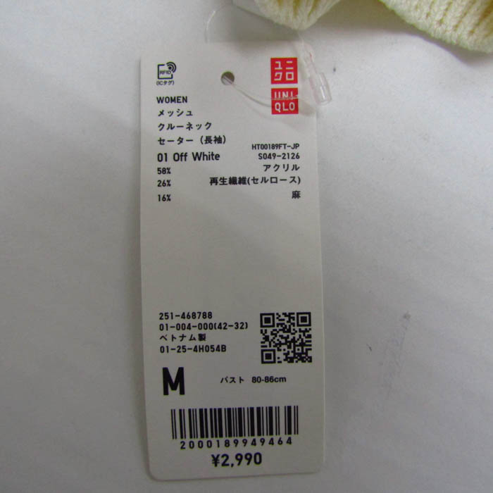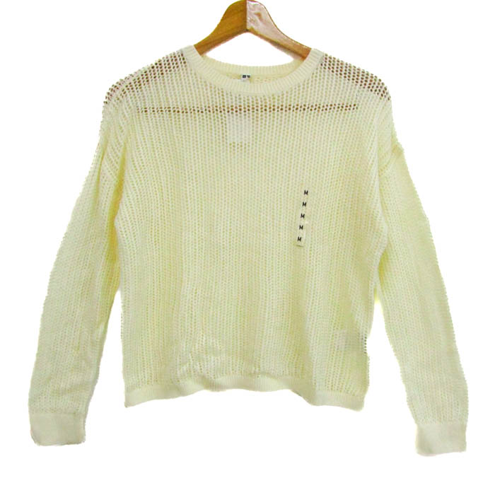 ユニクロ メッシュクルーネックセーター トップス 長袖 リネン混 未使用品 レディース Mサイズ オフホワイト UNIQLO 【中古】