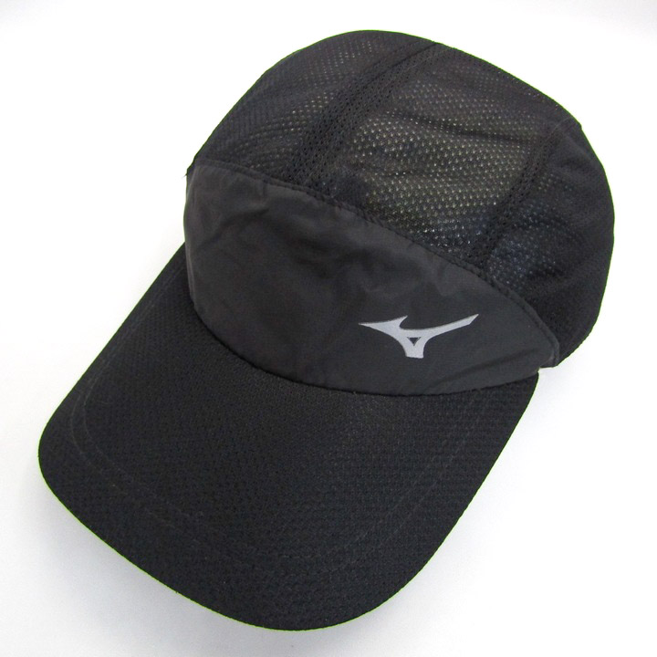 ミズノ ランニングキャップ メッシュ スポーツウエア 帽子 ブランド メンズ M(55-57cm)サイズ ブラック Mizuno 【中古】