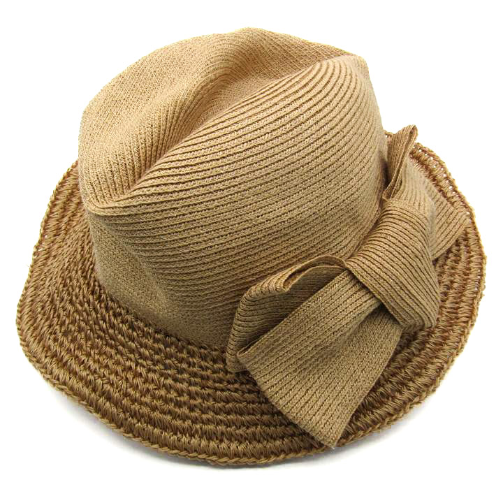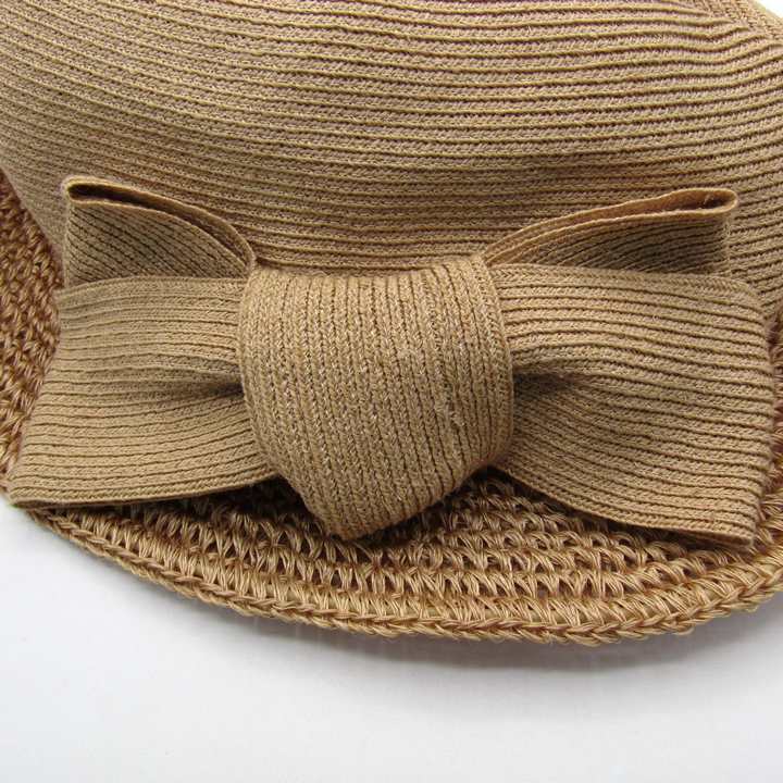 ピエス ド リュシル 麦わら帽子 リネンハット リボンモチーフ ブランド レディース Mサイズ ベージュ Pi...