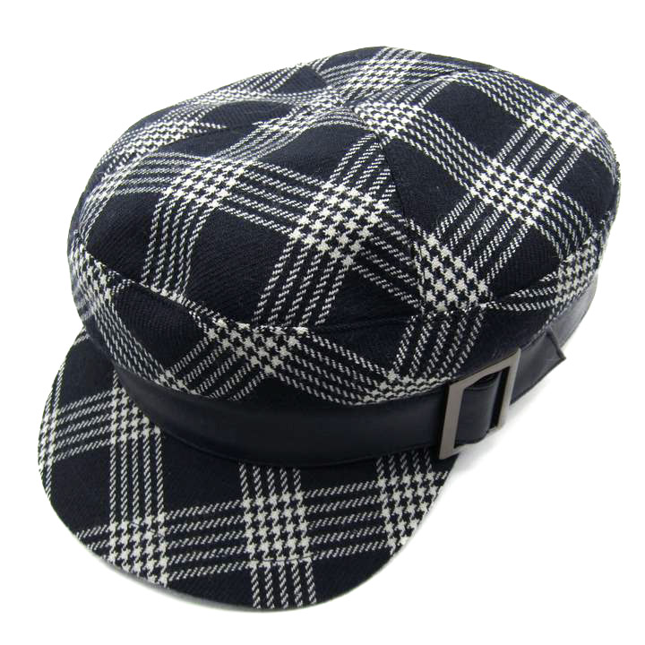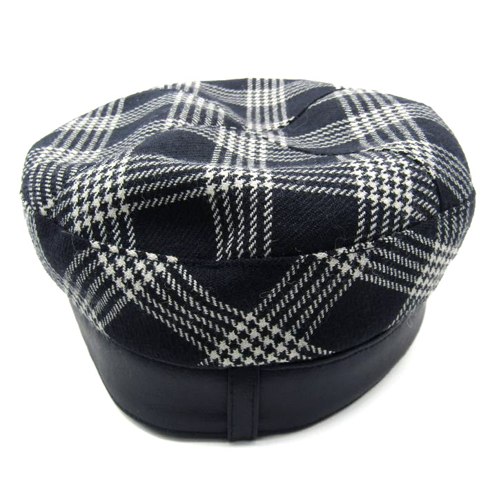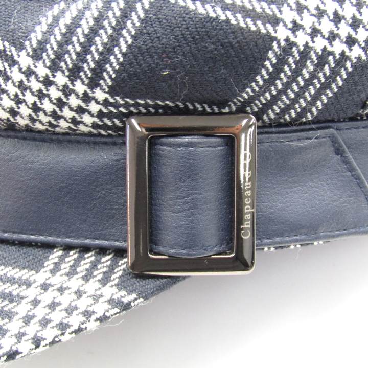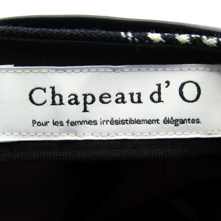 シャポードオー キャスケット チェック柄 ウール 日本製 帽子 ブランド レディース 57.5cmサイズ ブラック Chapeau'd O 【中古】