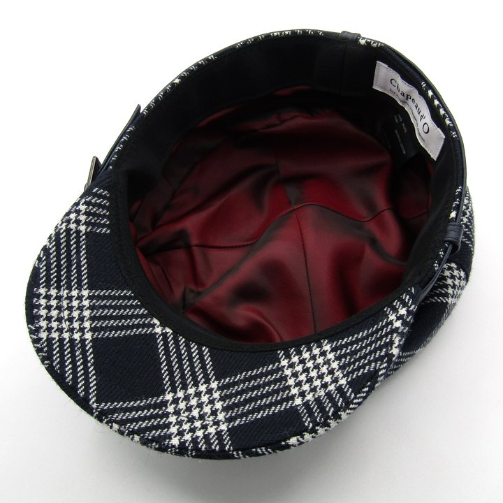 シャポードオー キャスケット チェック柄 ウール 日本製 帽子 ブランド レディース 57.5cmサイズ ブラッ...