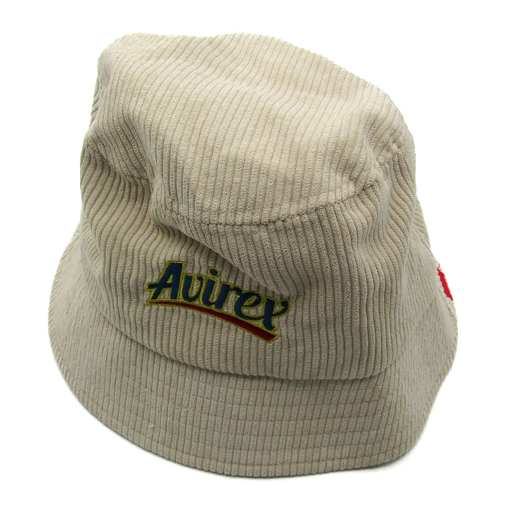 アヴィレックス バケットハット コーデュロイ ロゴ 帽子 ブランド レディース 57-59cmサイズ ベージュ AVIREX 【中古】