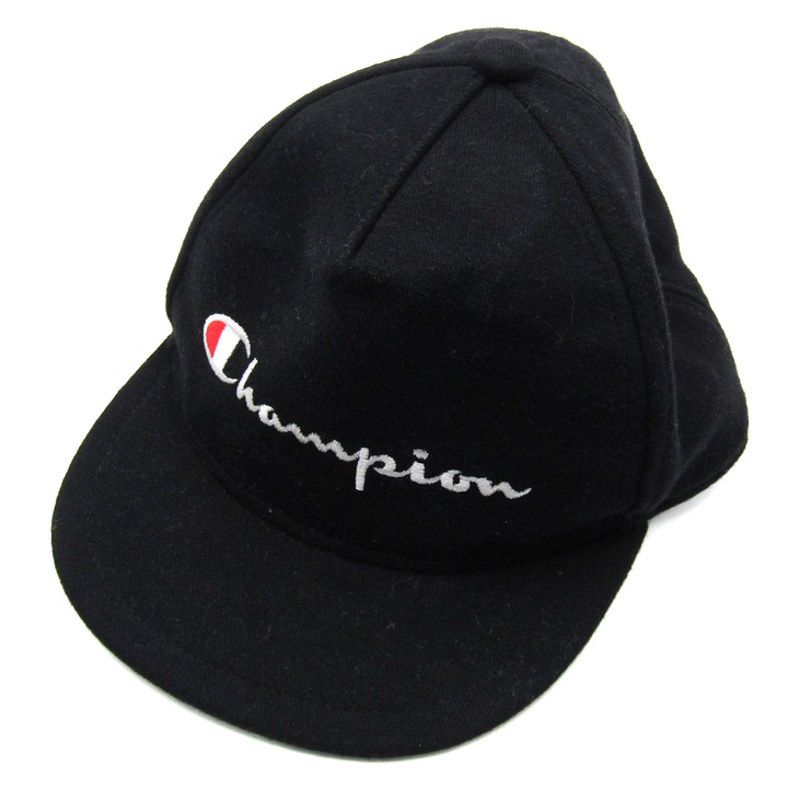 チャンピオン キャップ ロゴ スナップバック 帽子 ブランド キッズ 男の子用 53-55cmサイズ ブラック Champion 【中古】