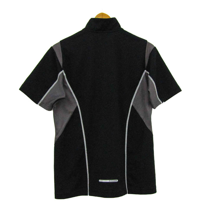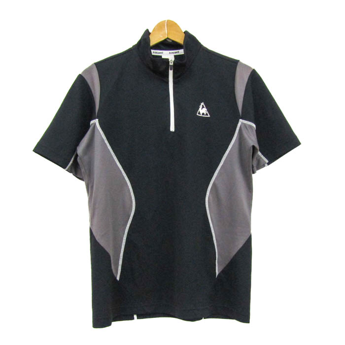 ルコックスポルティフ ポロシャツ トップス 半袖 ハーフジップ ハイネック ゴルフウエア メンズ Lサイズ 黒/グレー le coq sportif 【中古】