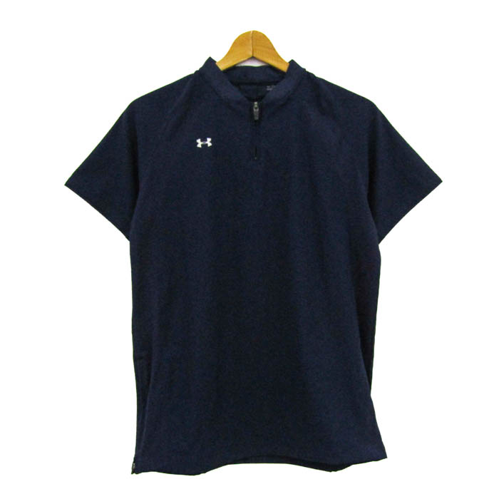 アンダーアーマー 半袖Tシャツ トップス ハーフジップ ストレッチ スポーツウエア メンズ SMサイズ ネイビー UNDER ARMOUR 【中古】