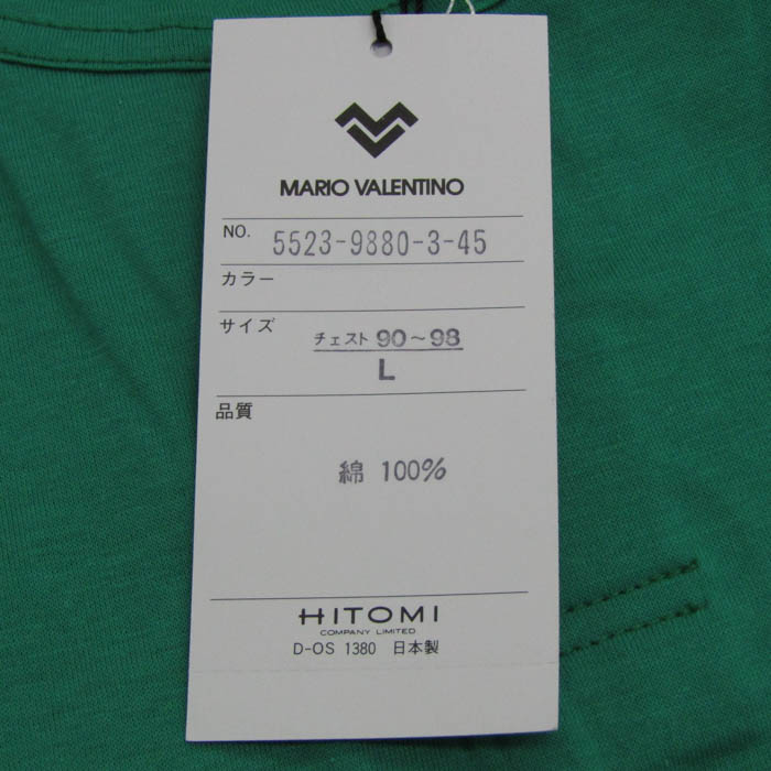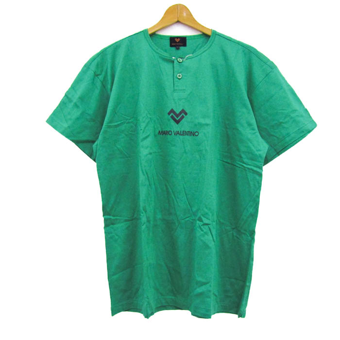 マリオ・ヴァレンティノ 半袖Tシャツ トップス ヘンリーネック ロゴT コットン 未使用品 メンズ Lサイズ 緑 MARIO VALENTINO 【中古】