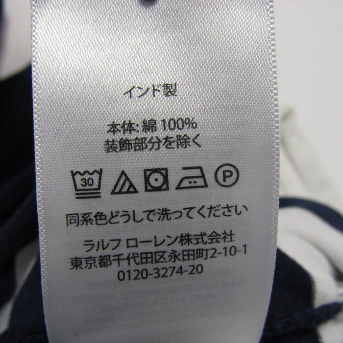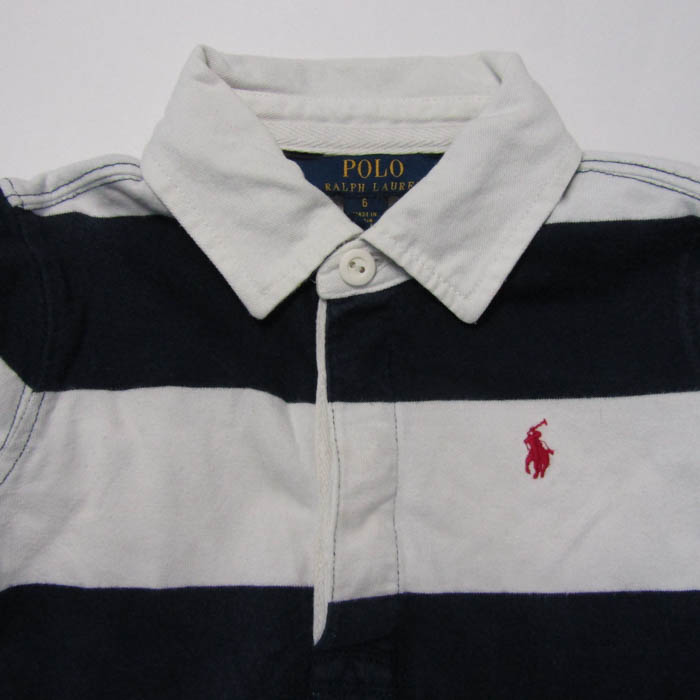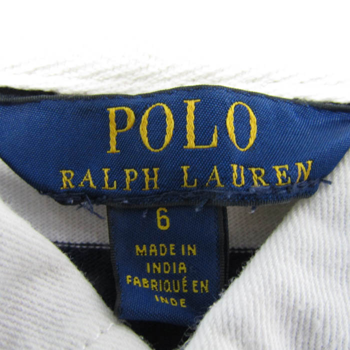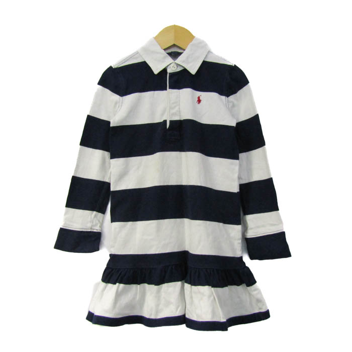 ポロラルフローレン ポロワンピース 長袖 コットン トップス 白 キッズ 女の子用 6サイズ ホワイト×ネイ...
