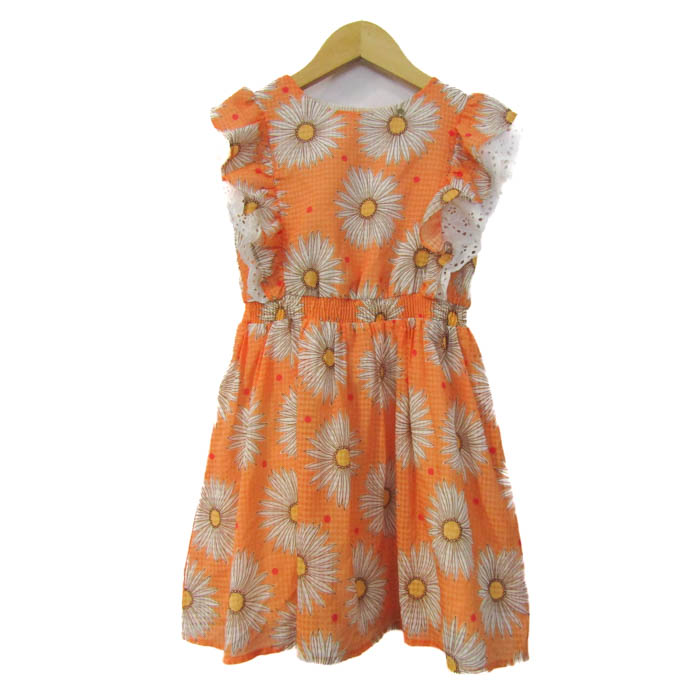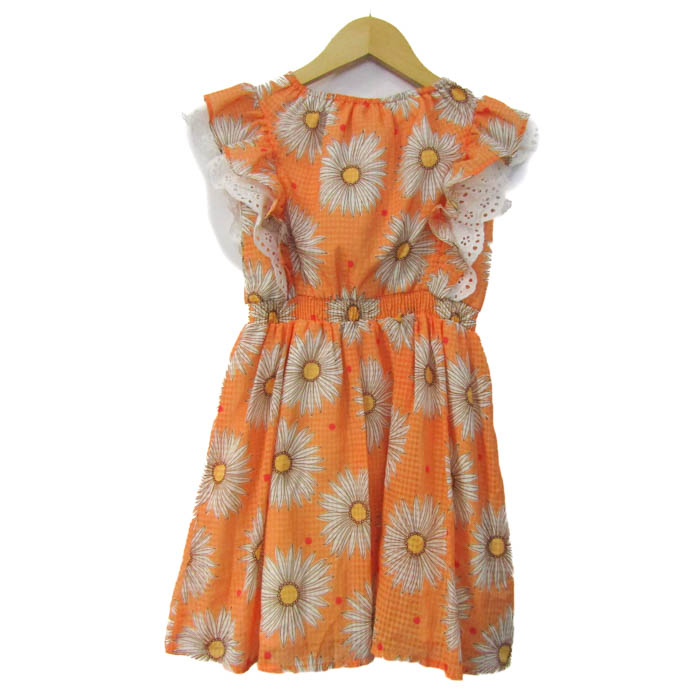 ケイトスペード ワンピース ノースリーブ ブランド トップス キッズ 女の子用 120サイズ オレンジ×ホワイト Kate Spade 【中古】